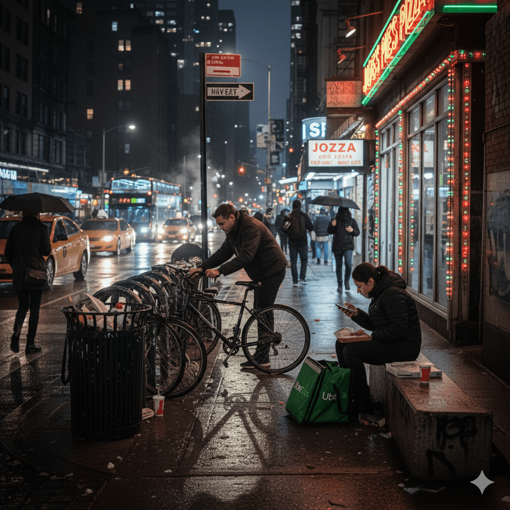 Ever wondered what it’s really like to work a night shift as an UberEats delivery driver in New York City? To understand the world of gig work in the city that never sleeps, we follow Anthony, a full-time food delivery worker, on his authentic journey through the controlled chaos of Manhattan. This is a first-hand look at the realities, challenges, and core tasks of a job where the grind is constant and every street corner presents a new variable.